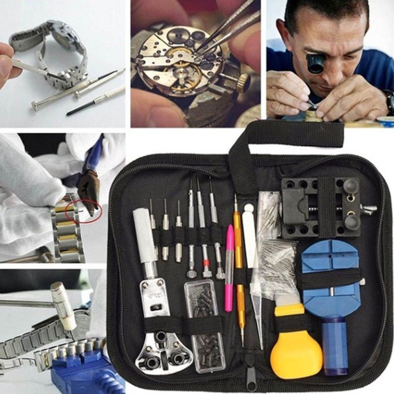 144pcs ชุดเครื่องมือซ่อมนาฬิกาอุปกรณ์ซ่อมนาฬิกาWatch Case Holder Opener Pin Link Remover Repair Tool Kit งมือซ่อมนาฬิก