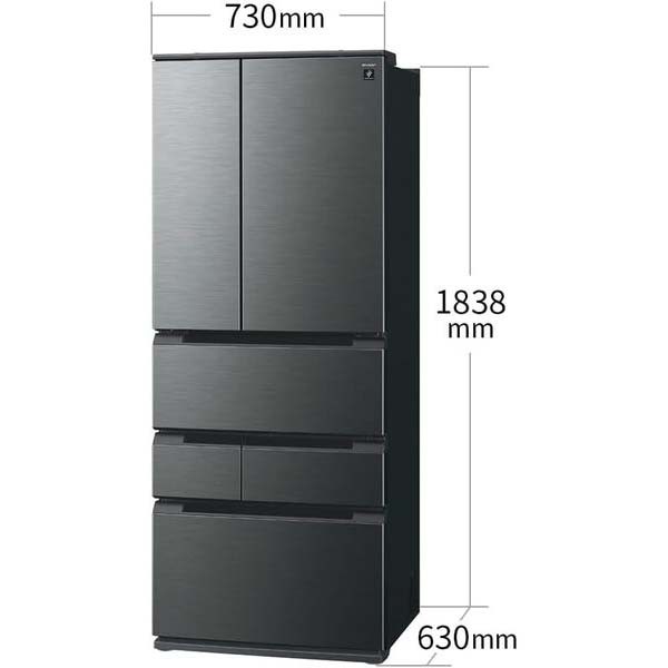 シャープ 冷蔵庫 幅73.0cm 545L 奥行薄型 SJ-MF55P-H ダスクダークメタル メガフリーザー ピラーレスフレンチドア
