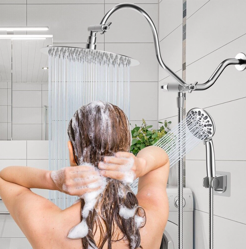 Upgraded 3-Way Diverter Valve: This shower head combo is very easy to install without tools or plumbers. The 3-way diverter can be used with a shower head/rainfall shower head alone, or with two showers at the same time. Our 3-way diverter and shower extension arm are designed to be connected together without leaking and shaking, while ordinary 3-way diverter is separated from extension arm, and it needs to be installed and connected together,which will lead to leak and shake.