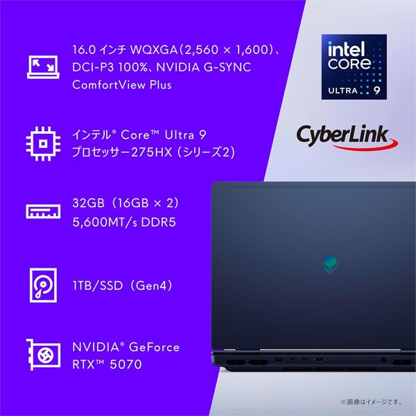 Dell ノートパソコン Alienware 16X Aurora AC16251 16インチ Intel®Core™Ultra 9 プロセッサー 275HX RTX 5070 メモリ32GB SSD1TB Office 2024搭載 Windows 11 インターステラー インディゴ 翌営業日対応オンサイト出張修理サービス1年(HDD返却不要サービス) NAA86-FNHBA