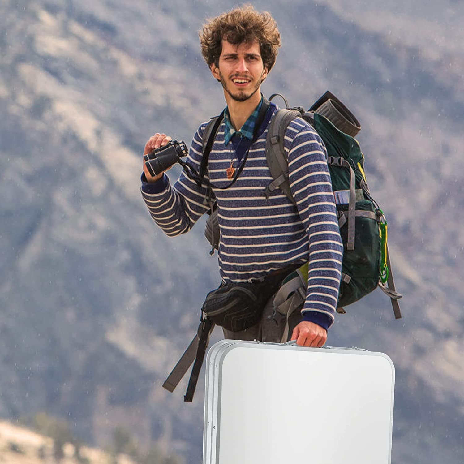 Folding Picnic Table with 4 Stools, Aluminum Table Oxford Mat Chair Set for up t