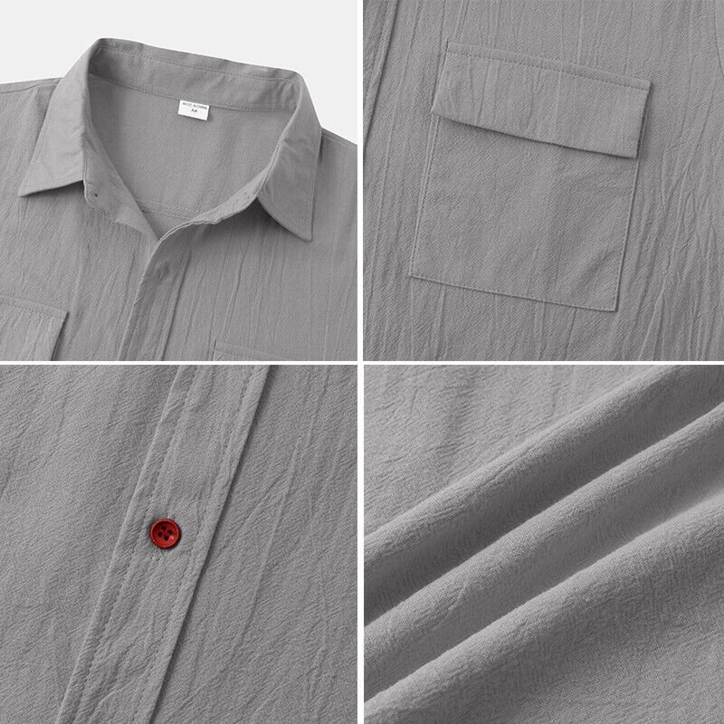 Men's Casual Button Down Shirts Short Sleeve Beach Linen Cotton Summer Shirt ❀